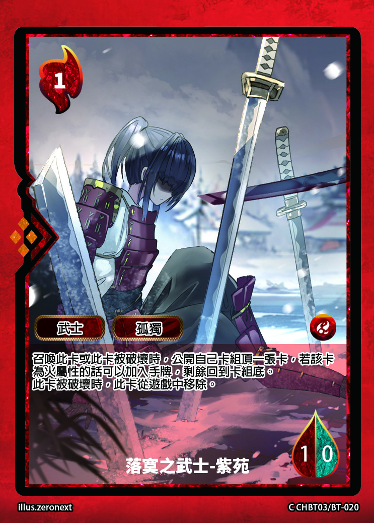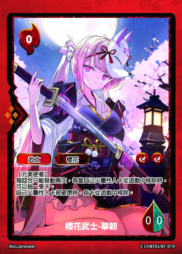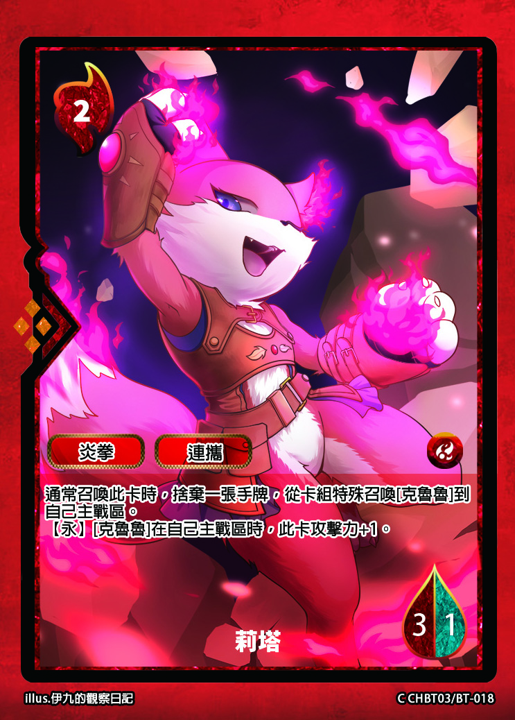 每回合只能發動兩次,每當自己火屬性人卡從遊戲中移除時,可以抽一張卡。