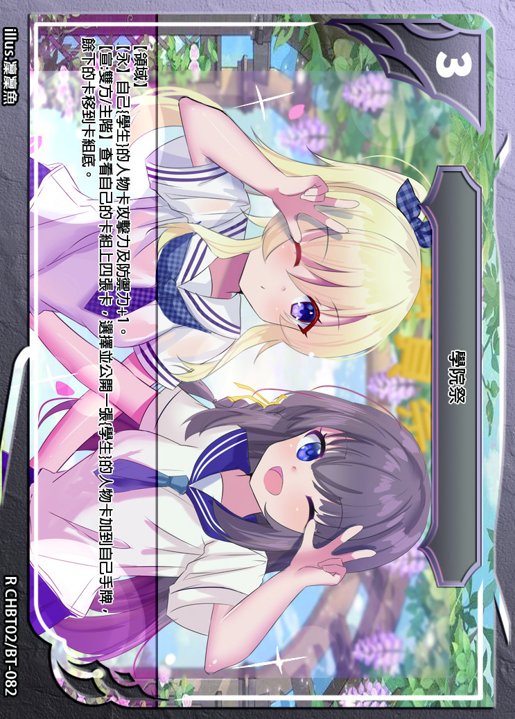 【宣:雙方/主階】查看自己的卡組上四張卡,選擇並公開一張{學生}的人物卡加到自己手牌,餘下的卡移到卡組底。
