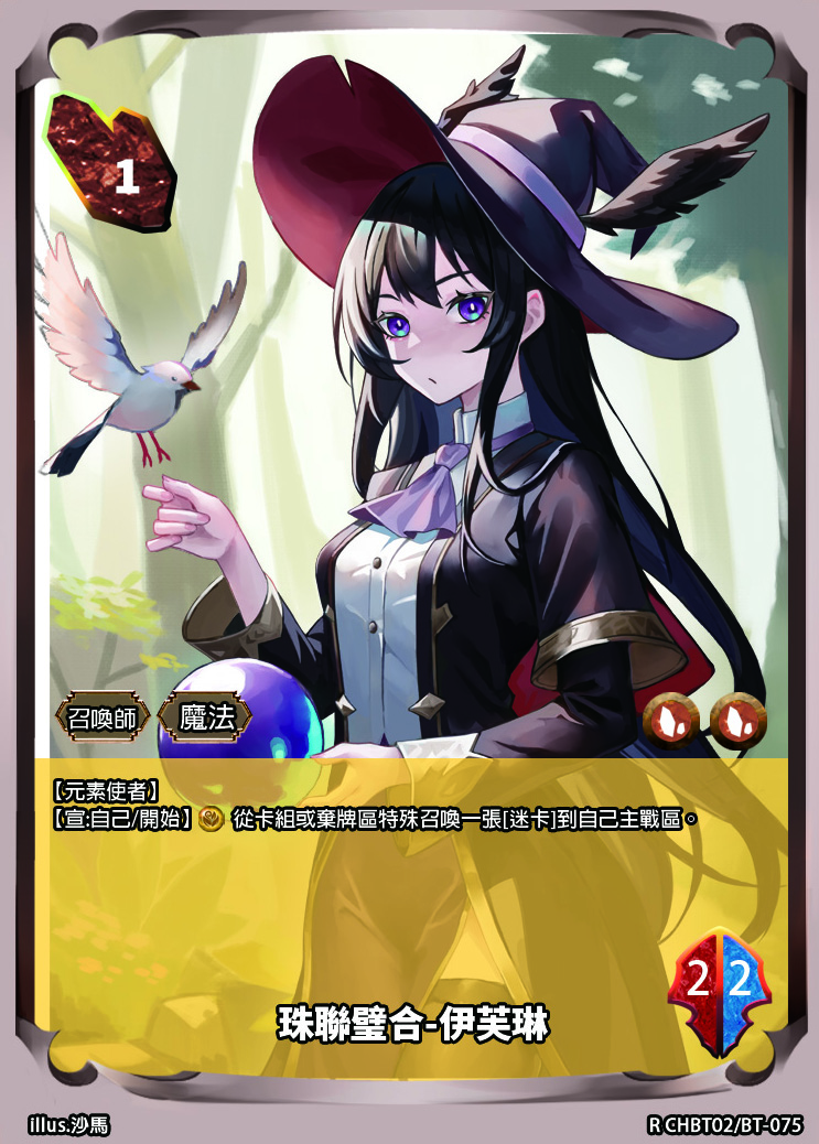 【永】主戰區或元素區沒有{召喚師}的人物卡時,此卡移到棄牌區。