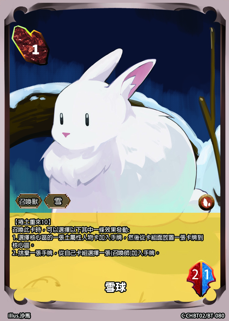【宣:自己/主階】(土) 從卡組或棄牌區選擇一張[雪球]到加到手牌。