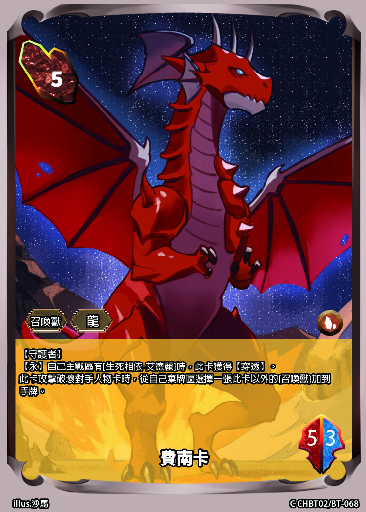 此卡攻擊破壞對手人物卡時,從自己棄牌區選擇一張此卡以外的{召喚獸}加到手牌。