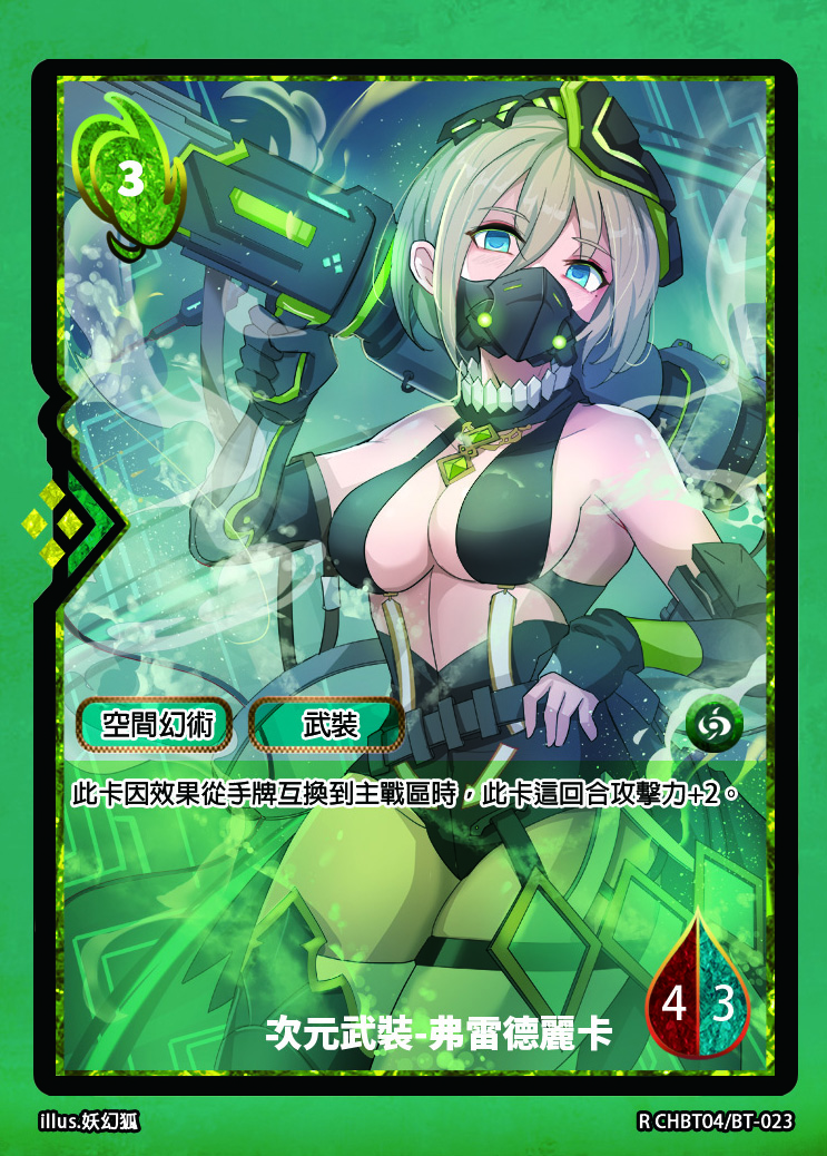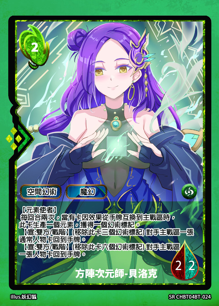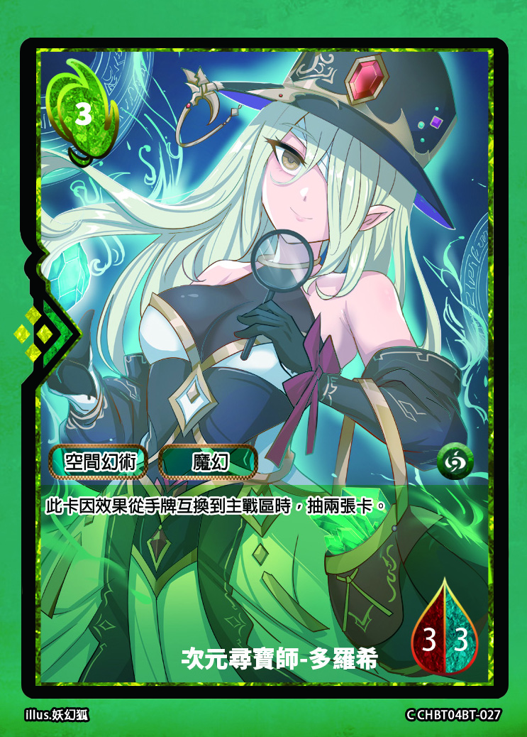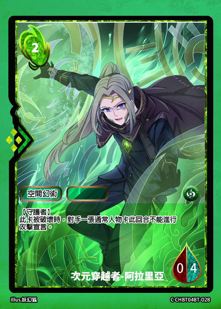 每回合兩次,當有卡因效果從手牌互換到主戰區時,此卡生產一個元素,獲得一個幻術標記。