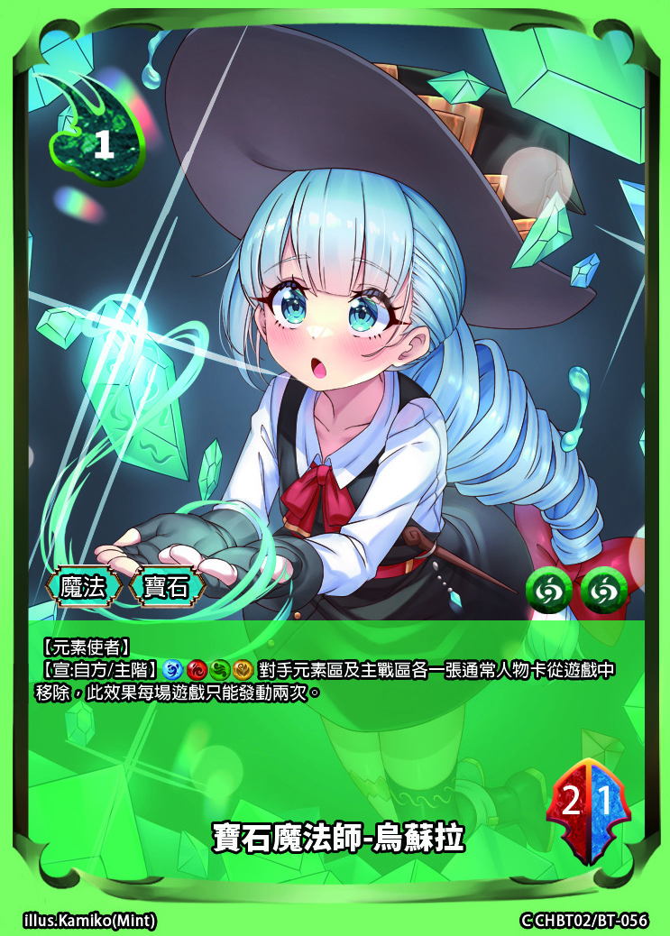 【宣:自方/主階】(水火風土) 對手元素區及主戰區各一張通常人物卡從遊戲中移除,此效果每場遊戲只能發動兩次。