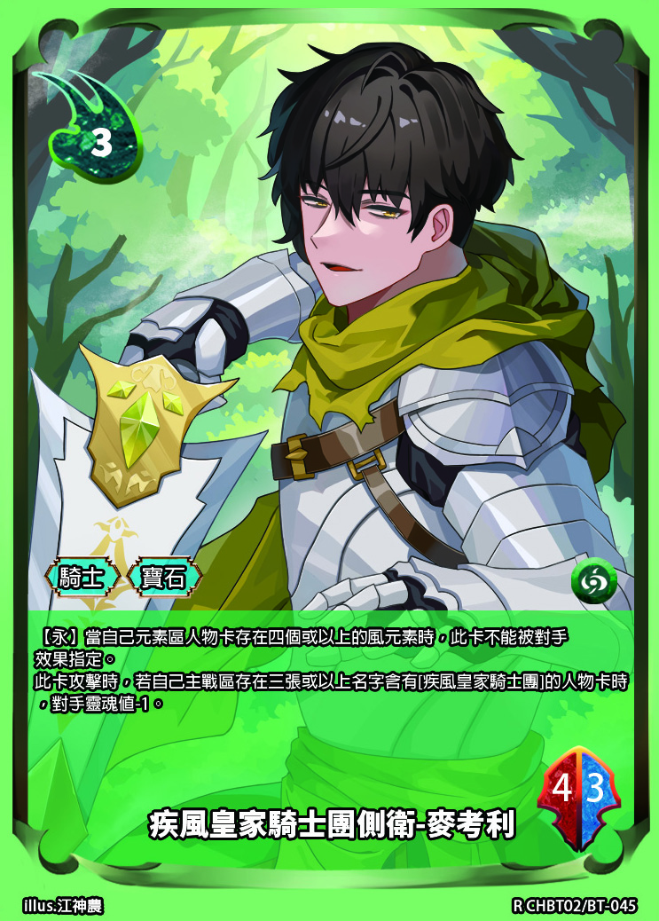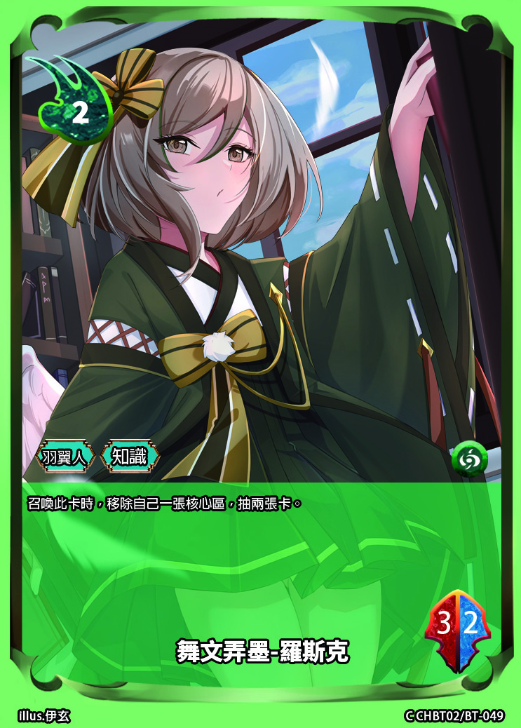 此卡被破壞時,移除兩個元素,從手牌設置一張風屬性通常人物卡到自己元素區。