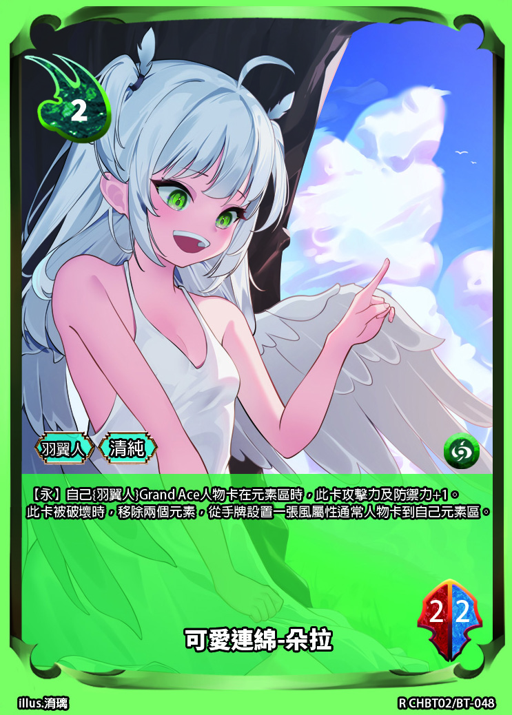 【永】自己{羽翼人}Grand Ace人物卡在元素區時,此卡攻擊力及防禦力+1。
