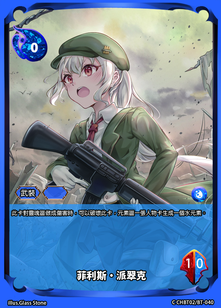 此卡對靈魂區做成傷害時,可以破壞此卡,元素區一張人物卡生成一個水元素。