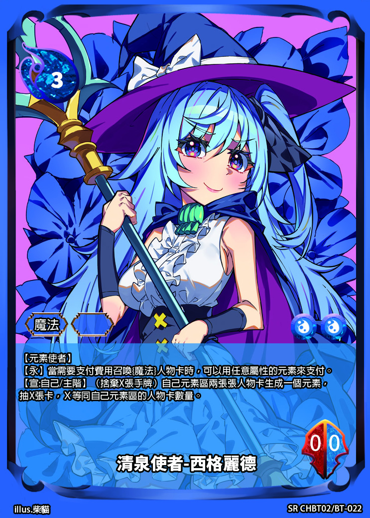 【永】當需要支付費用召喚{魔法}人物卡時,可以用任意屬性的元素來支付。