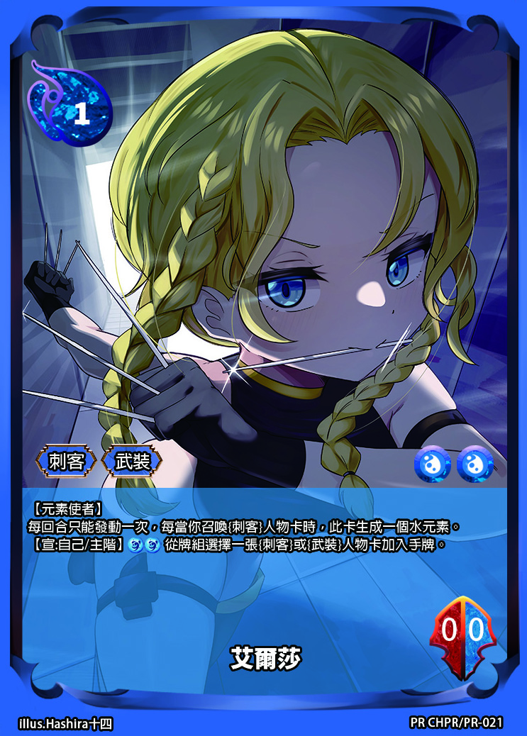 【宣:自己/主階】(水水)從牌組選擇一張{刺客}或{武裝}人物卡加入手牌。