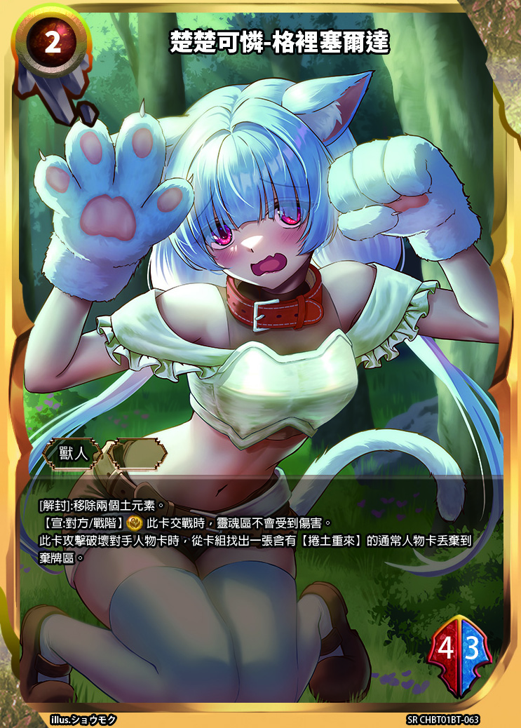 通常召喚此卡時,可以自己靈魂值-2,如果扣減,查看自己的卡組上方3張卡,選擇一張{獸人}的人物卡加入手牌,一張卡加入核心區,剩餘移到墓地。