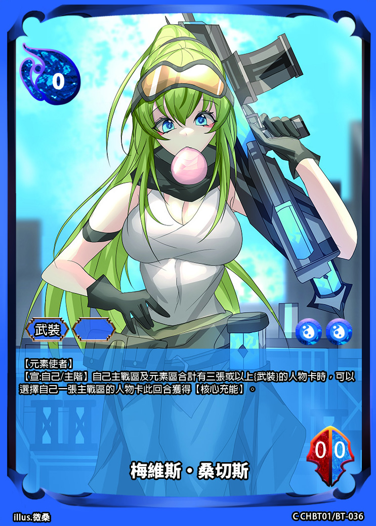 【宣:自己/主階】(無) 破壞此卡,破壞對手元素區一張元素生產為1的通常人物卡。