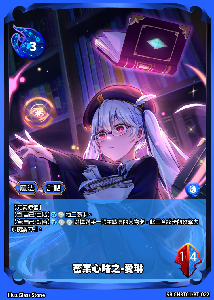 【宣:自己/戰階】(水無無)選擇對手一張主戰區的人物卡,此回合該卡的攻擊力跟防禦力-3。